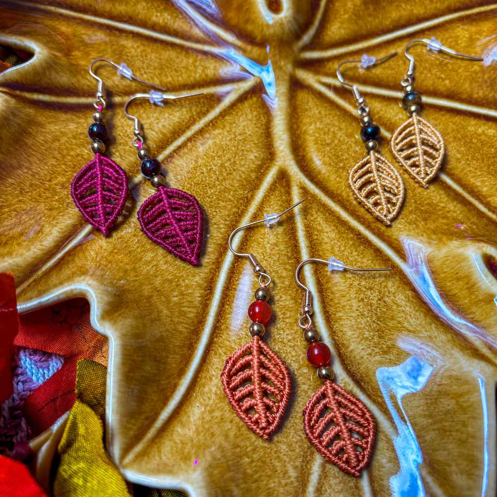 These macramé earrings reflect the rich colors of fall forests – from deep reds to warm oranges and golden yellows. The leaf shape symbolizes gentle transformation, the rhythm of nature and the beauty of seasonal change.